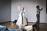 … You are invited to witness this action as a Requiem - an act of remembrance. In recent years, Korea has had to contend with unforgettable loss resulting in trauma for youth, parents, family, friends and colleagues. How to mourn … How to mark a loss … Often trauma is best tempered with silence. We invite you to join us in one minute of silence before we begin …